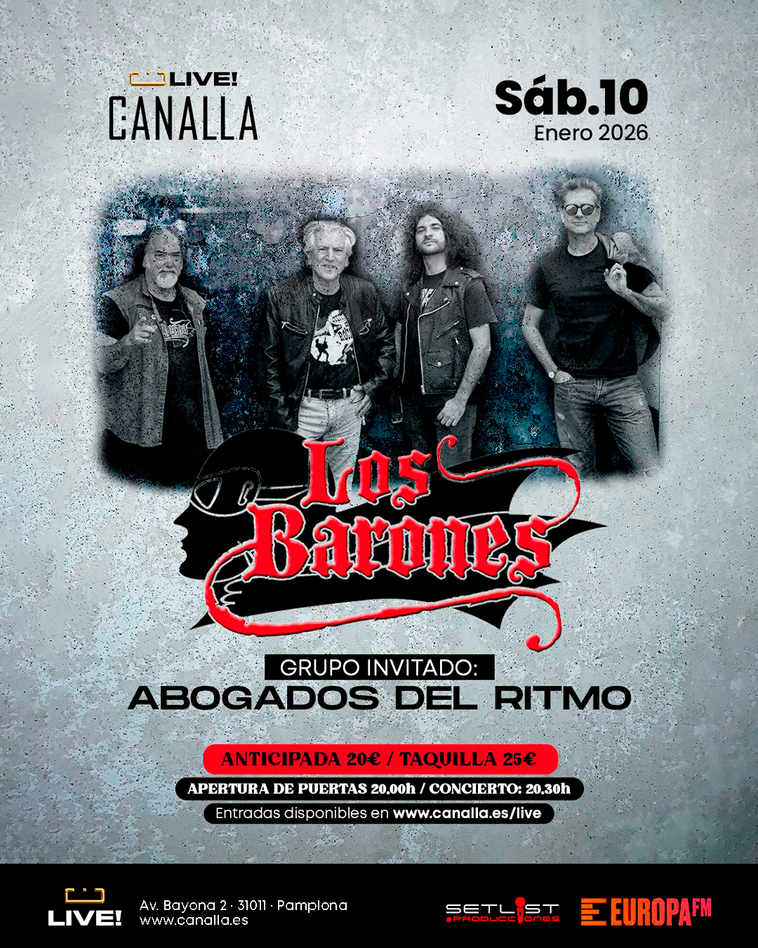 Aquí encontrarás toda la información sobre la programación de la sala. Estate pendiente para no perderte los mejores conciertos en Pamplona.
